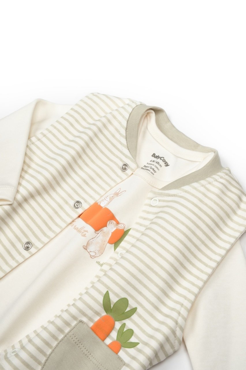 Set 3 piese: body, pantalon si vesta Rabbit, 100% bumbac organic, BabyCosy (Marime: 9-12 luni)