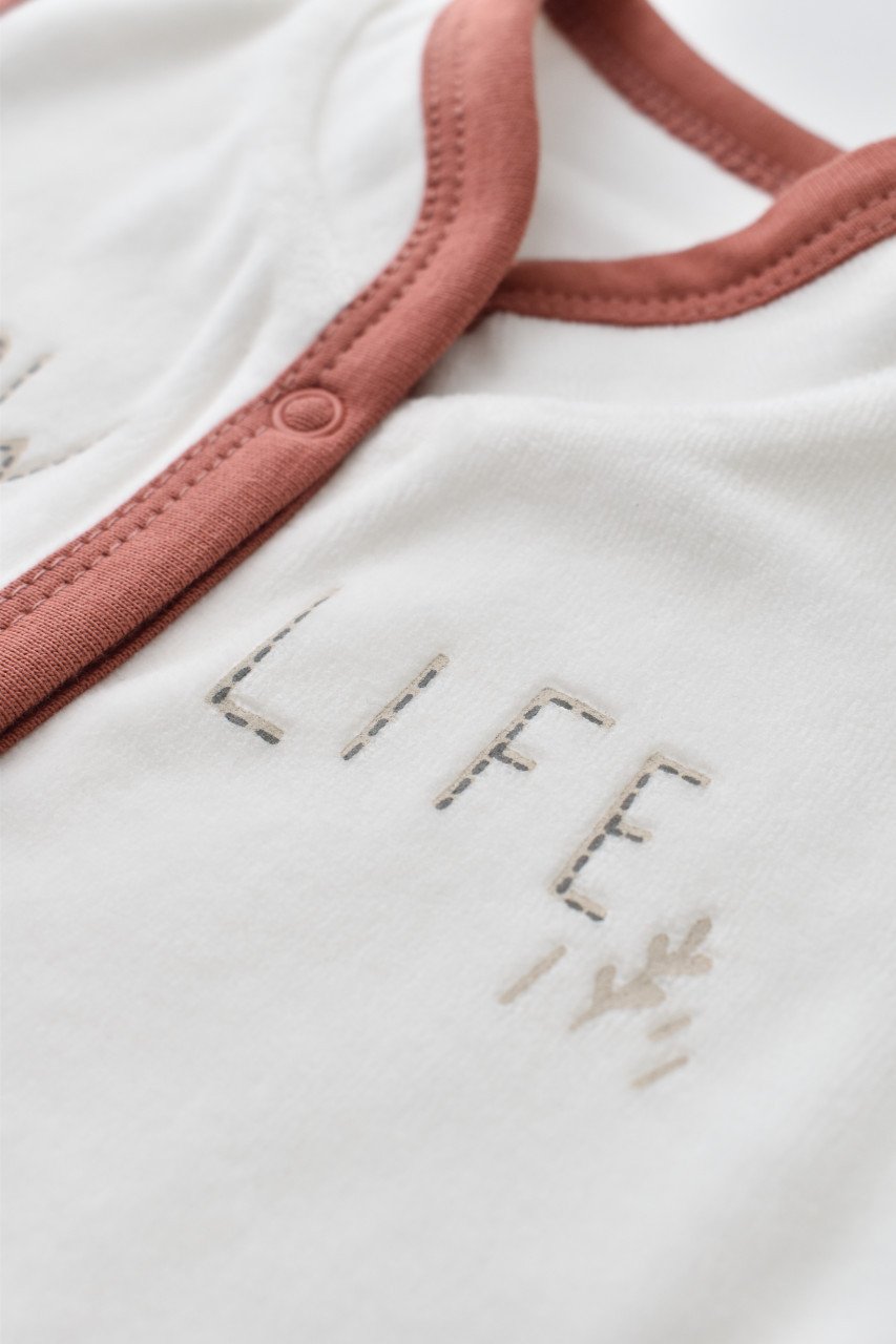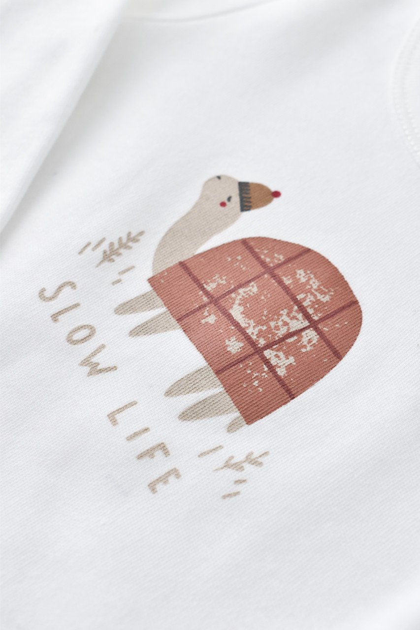 2. Body-ul cu maneci lungi, din 100% bumbac organic, se inchide cu capse intre picioruse si la umar. De asemenea, are printata o mica broscuta testoasa