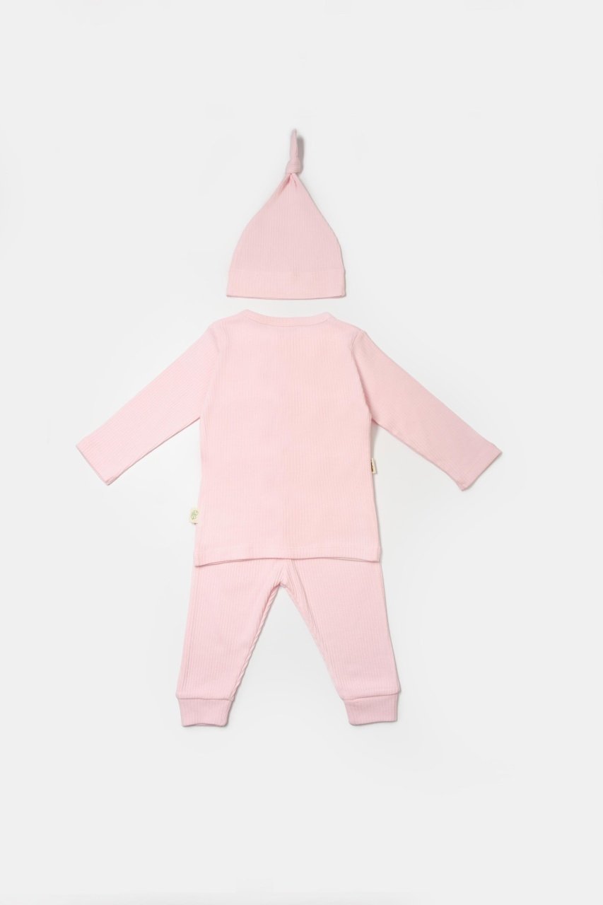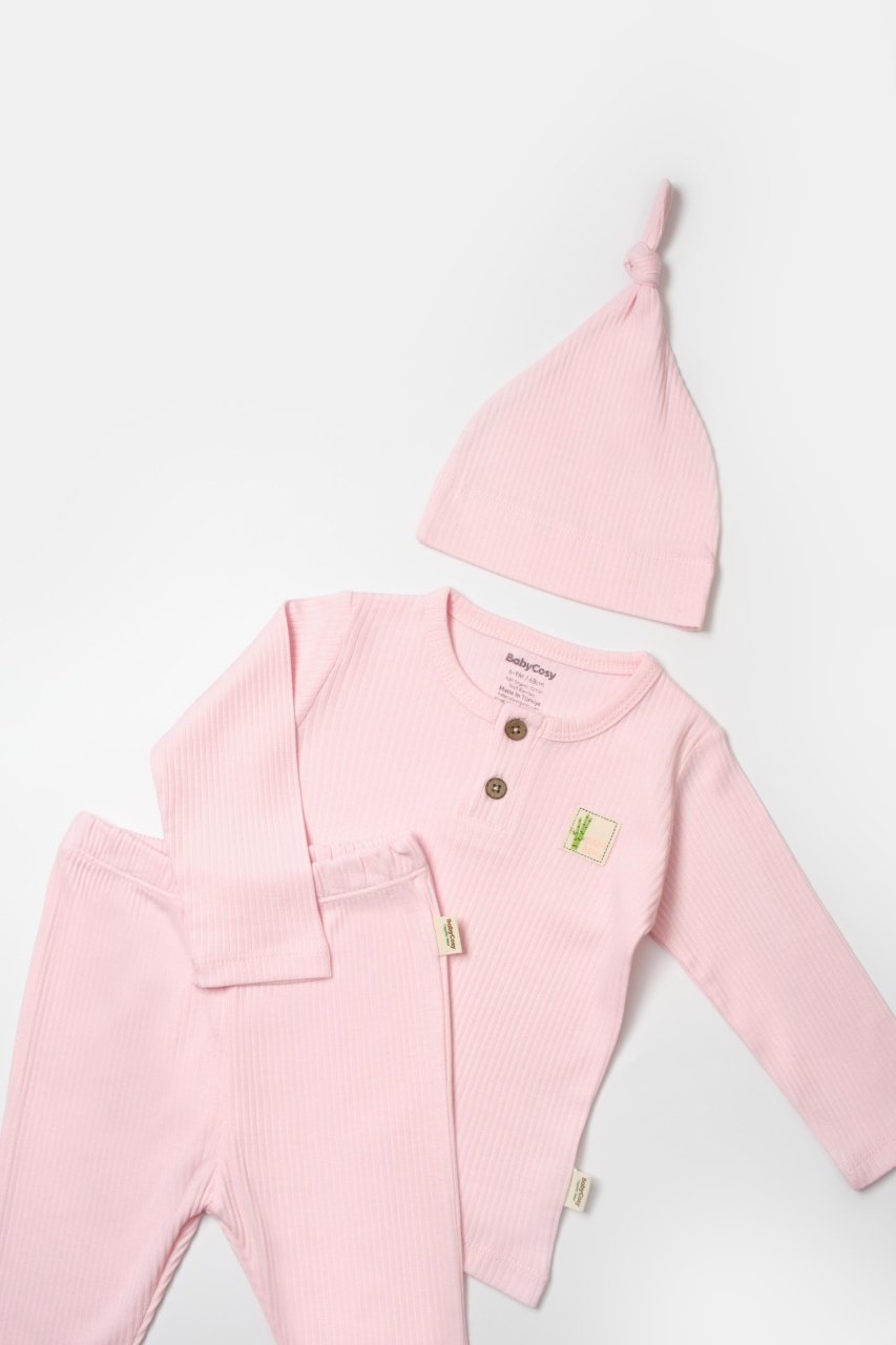 Set 3 piese:bluza, pantaloni si caciulita Bamboo, roz, BabyCosy, 50% bumbac+50%bambus (Marime: 6-9 luni)