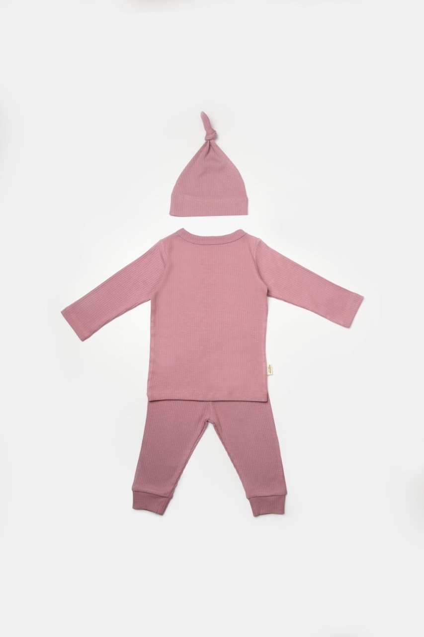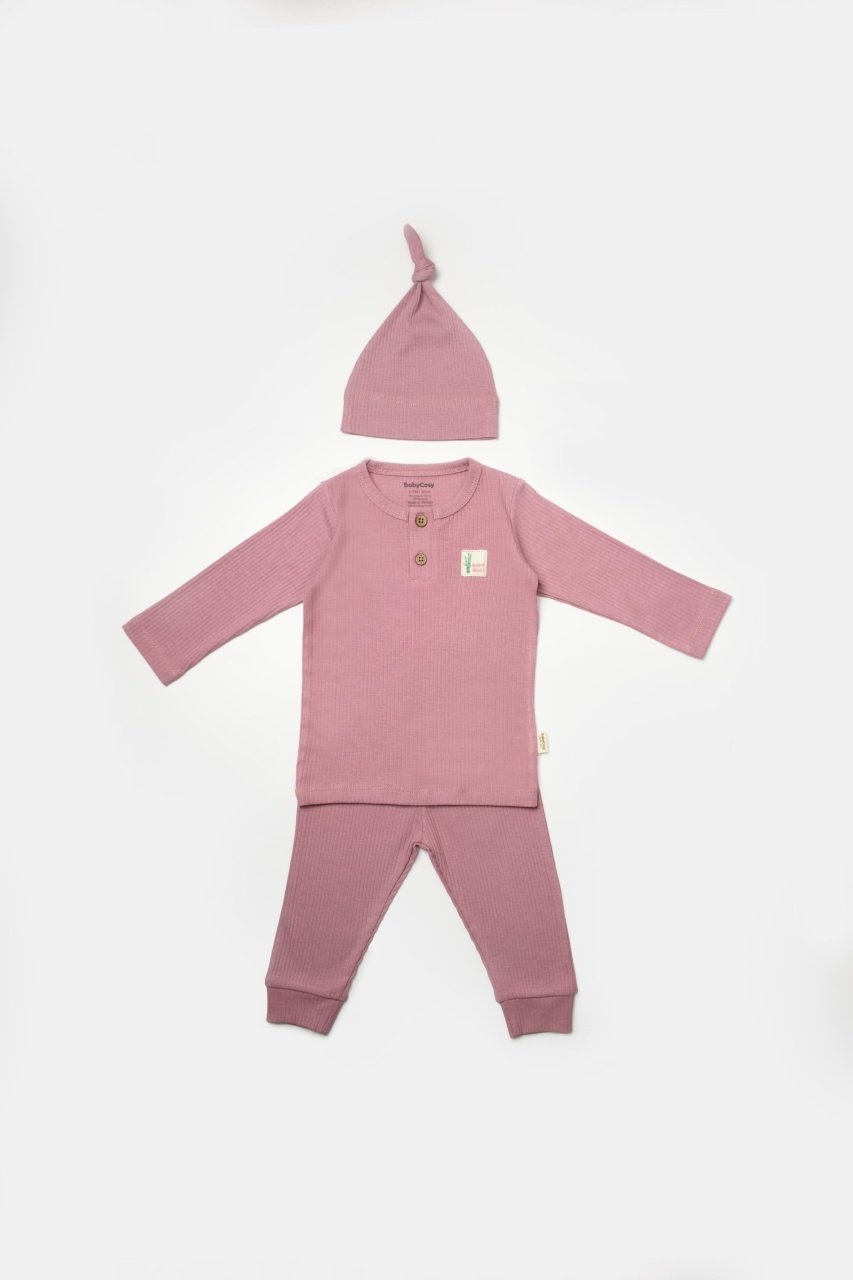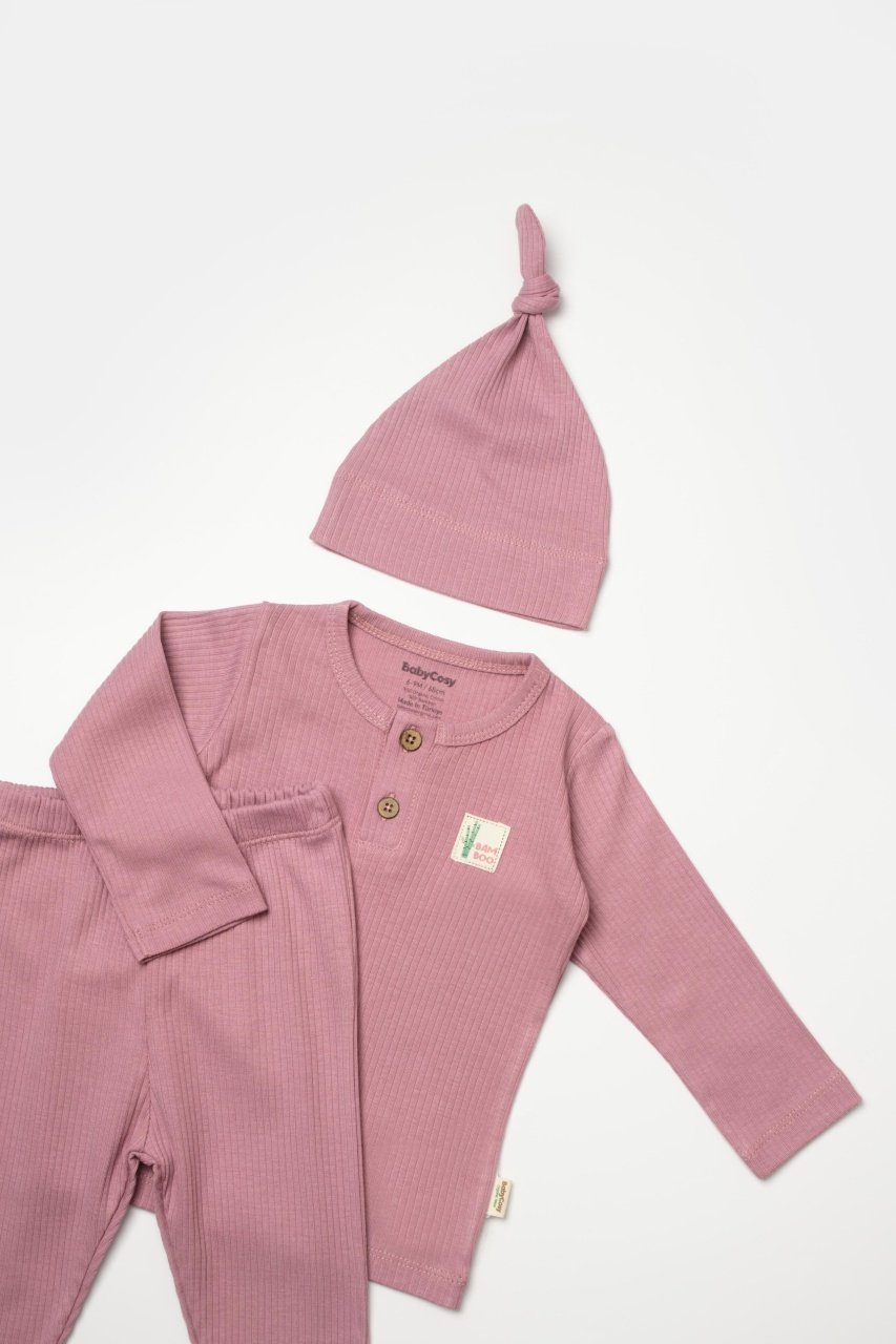 Set 3 piese:bluza, pantaloni si caciulita Bamboo, roz inchis, BabyCosy, 50% bumbac+50%bambus (Marime: 18-24 Luni)