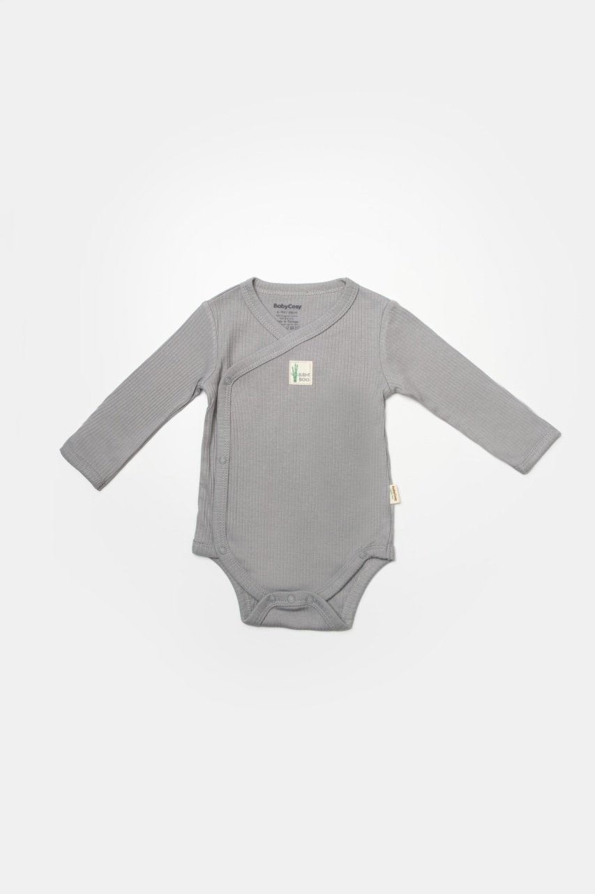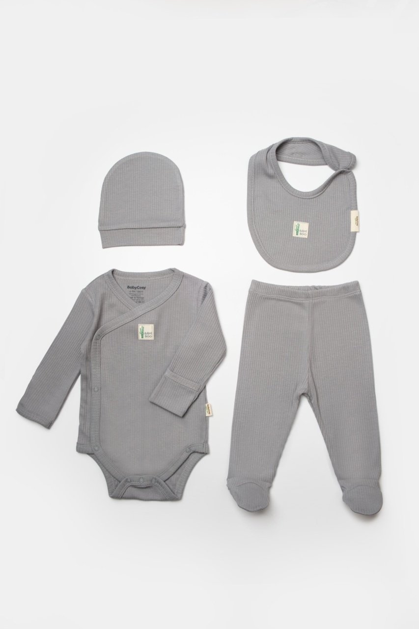 Set 4 piese:body, pantaloni, baveta si caciulita Bamboo, gri, BabyCosy, 50% bumbac+50%bambus (Marime: 6-9 luni)