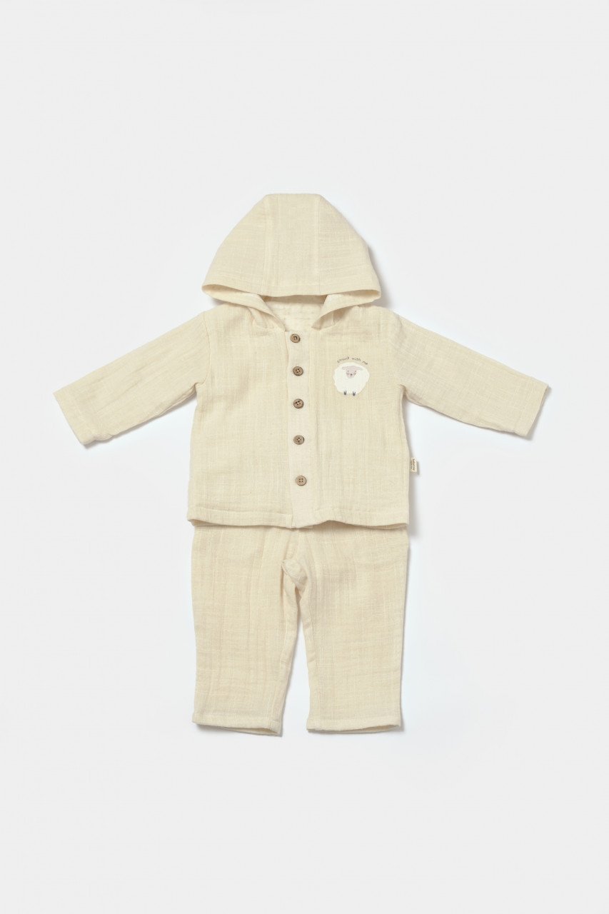 Set bluza cu gluga si pantaloni, Winter muselin, 100% bumbac – Stone, BabyCosy (Marime: 3-6 Luni)