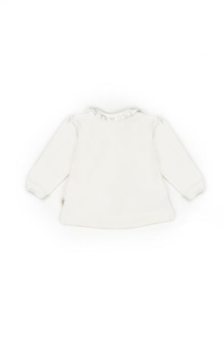 Bluziță cu capse frontale, guler cu volănaș și imprimeu cu o fundiță