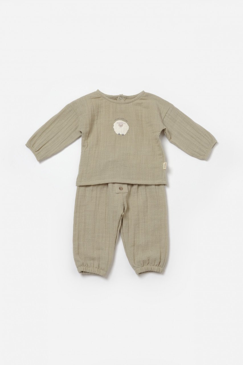 Set bluza si pantaloni, Winter muselin, 100% bumbac – Verde, BabyCosy (Marime: 12-18 Luni)