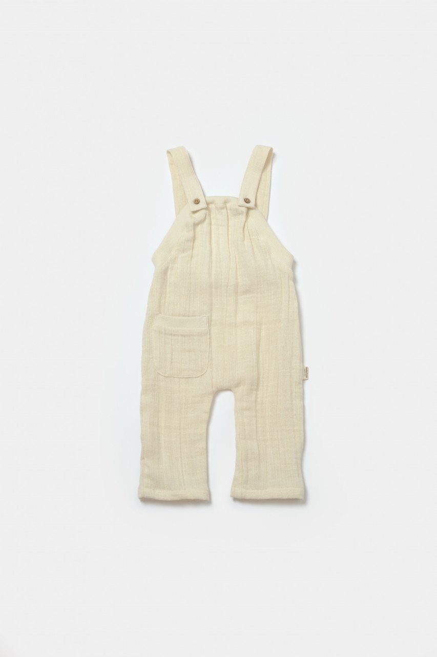 1. Salopeta din 100% bumbac – muselina delicat cu pielea gingasa a a bebelusului. Acestia au o croiala moderna fiind foarte confortabila. Se inchid cu 2 nasturei. Au un buzunar