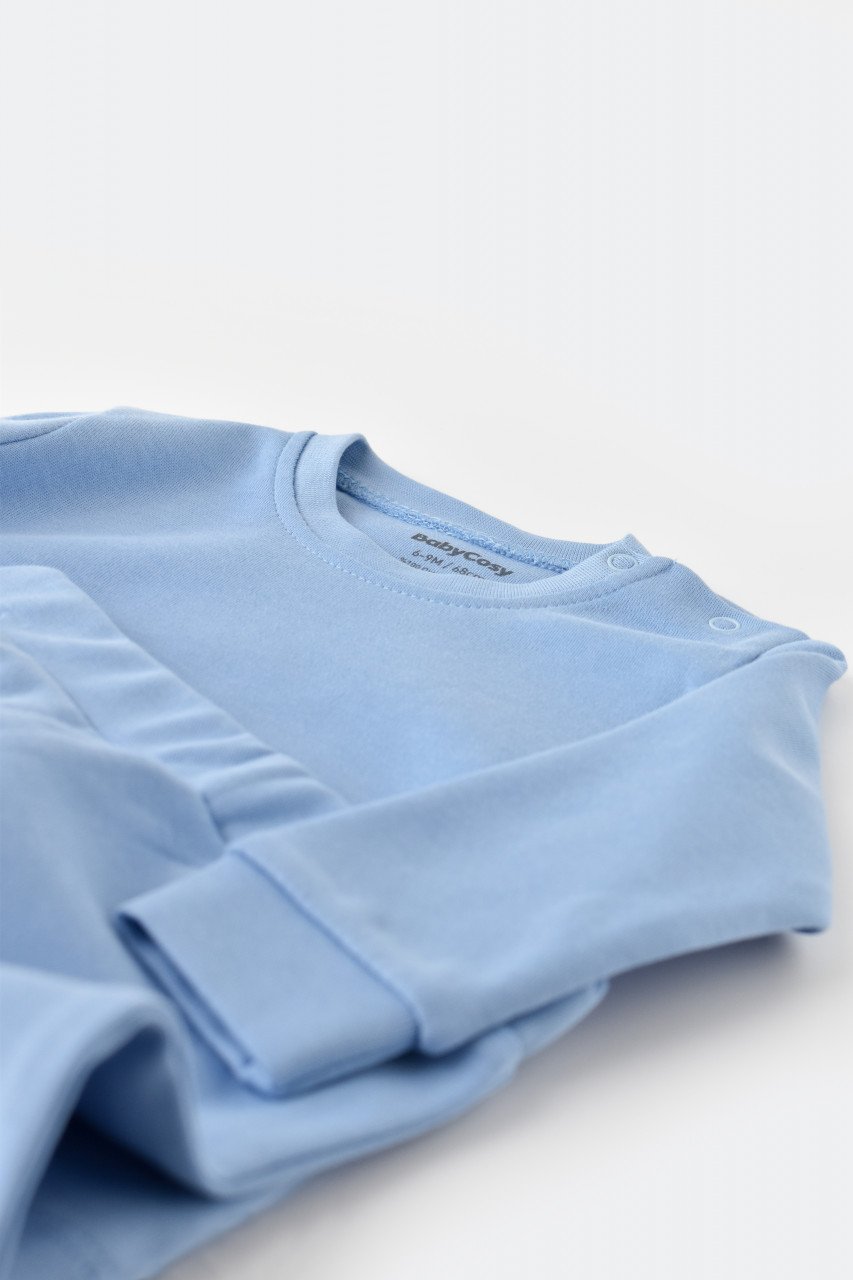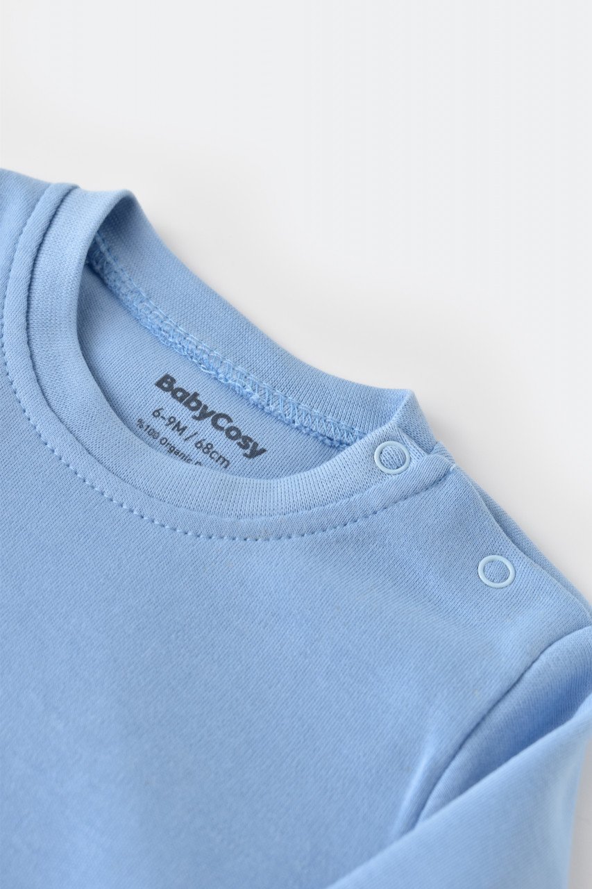 Set bluzita cu maneca lunga si pantaloni lungi – bumbac organic 100% – Bleu, BabyCosy (Marime: 9-12 luni)