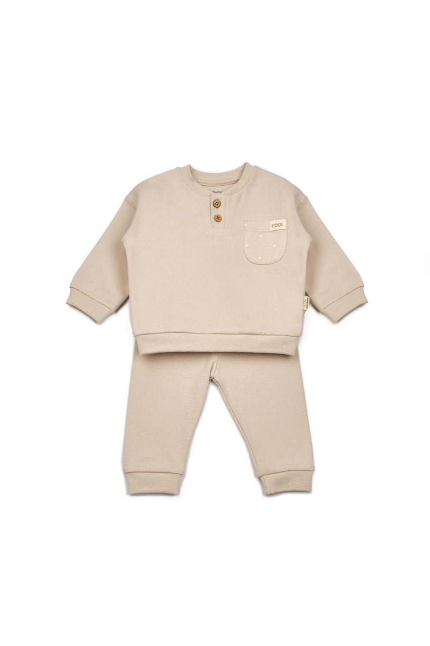 Setul din doua piese de la BabyCosy este casual si confortabil fiind usor de imbracat si usor de intretinut. Acesta ofera bebelusilor un look modern si confortabil in acelasi timp.