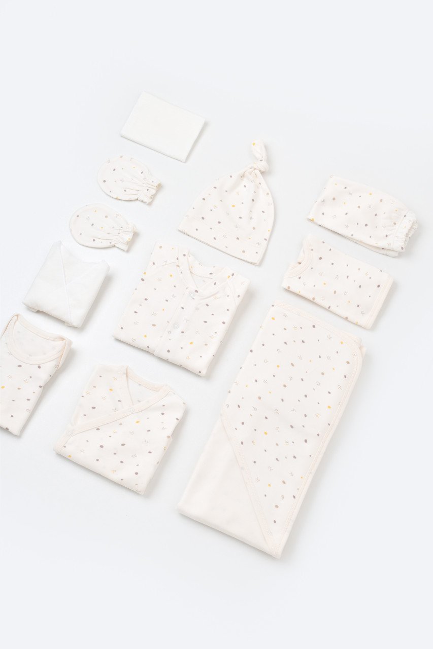 Set de 10 piese pentru nou nascut – 100% bumbac organic – Ecru cu buline, BabyCosy