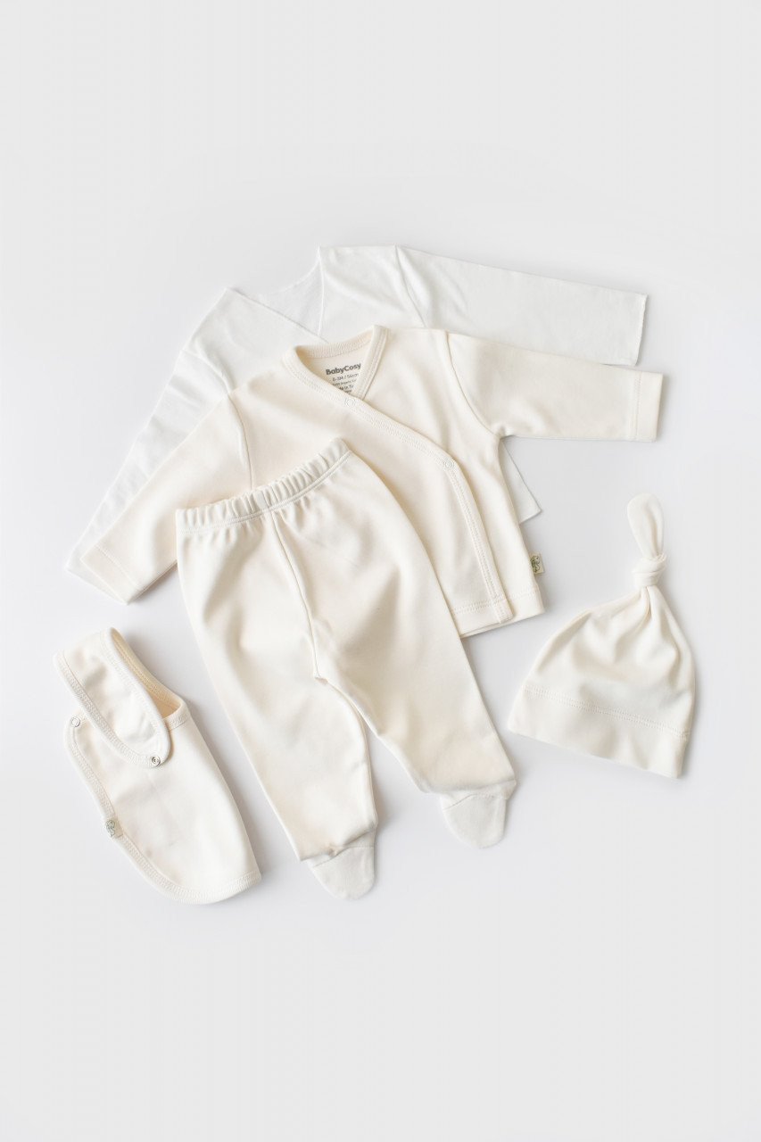 Set de 5 piese pentru nou nascut – 100% bumbac organic – Ecru, BabyCosy