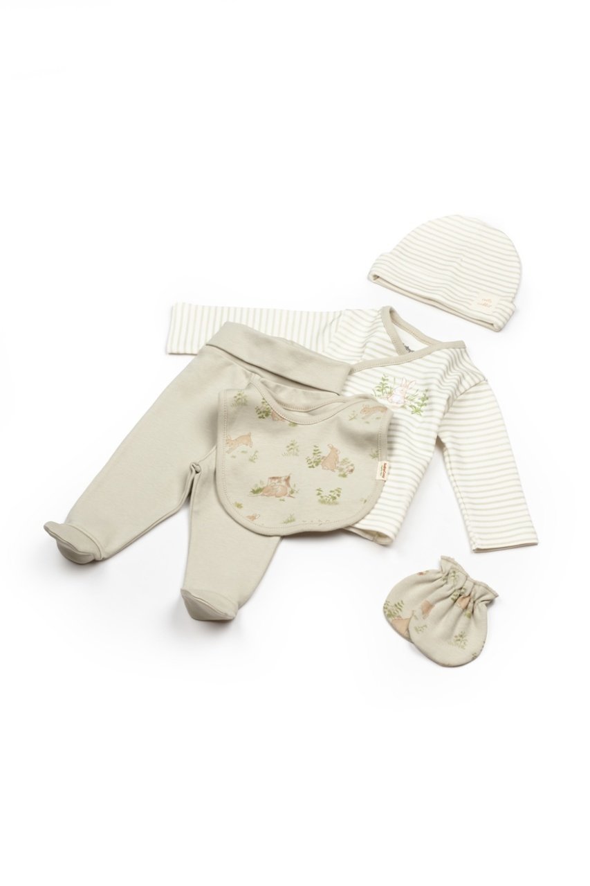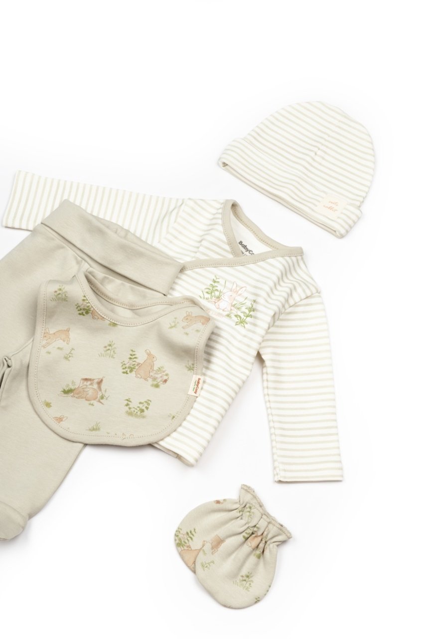 Set de 5 piese pentru nou nascut, 100% bumbac organic, Rabbit, BabyCosy