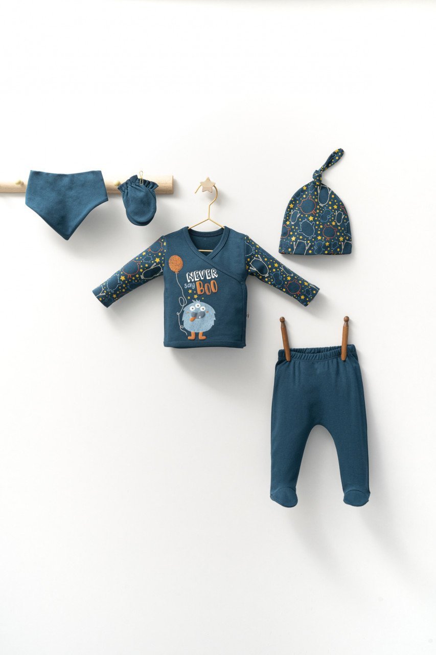 Setul Monster pentru nou-născuți baietei este alcătuit din 5 piese:
