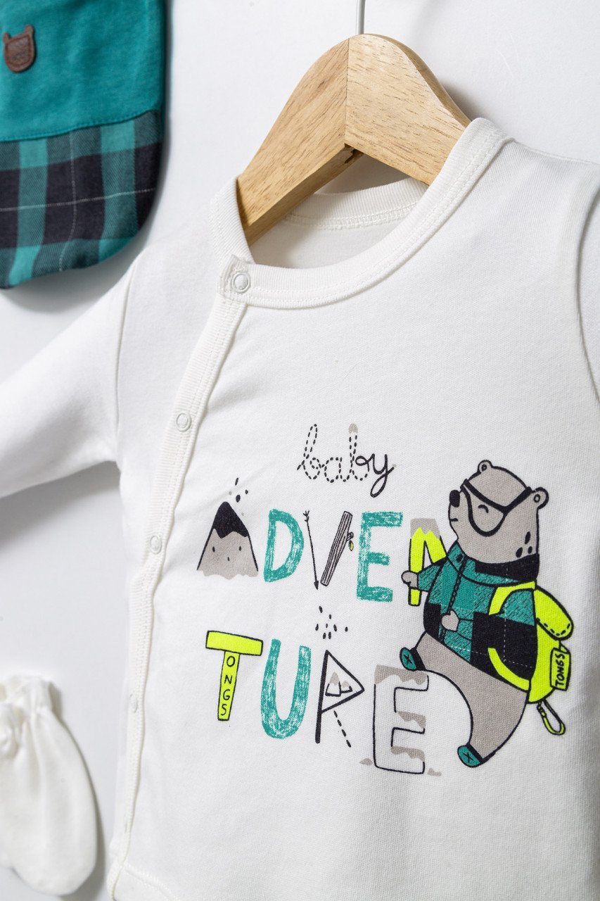 Set de 5 piese pentru nou nascut baietel Mountain, Tongs baby, 0-3 luni (Culoare: Verde)