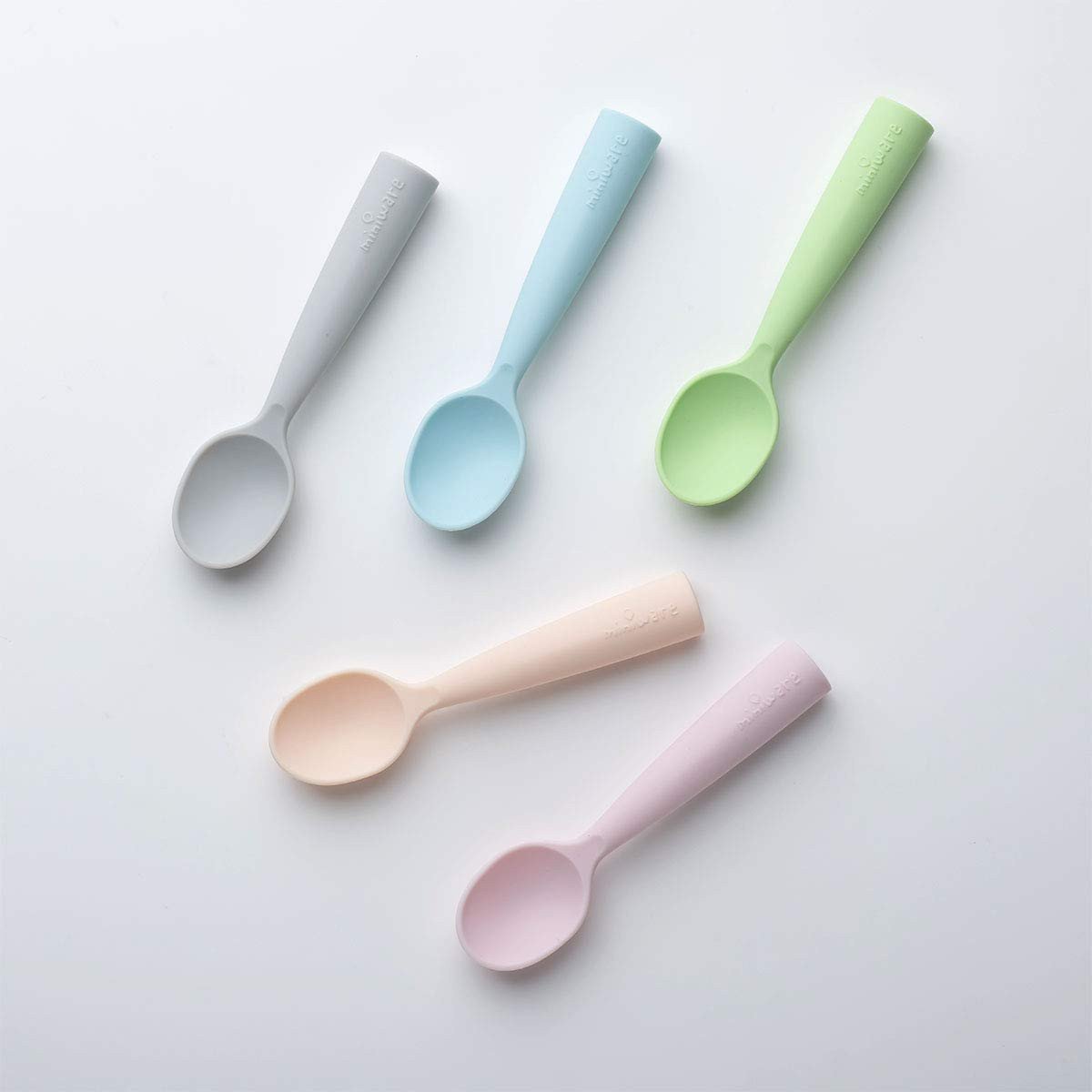 Set de lingurite bebelusi Miniware, 100% silicon alimentar, Grey+Keylime