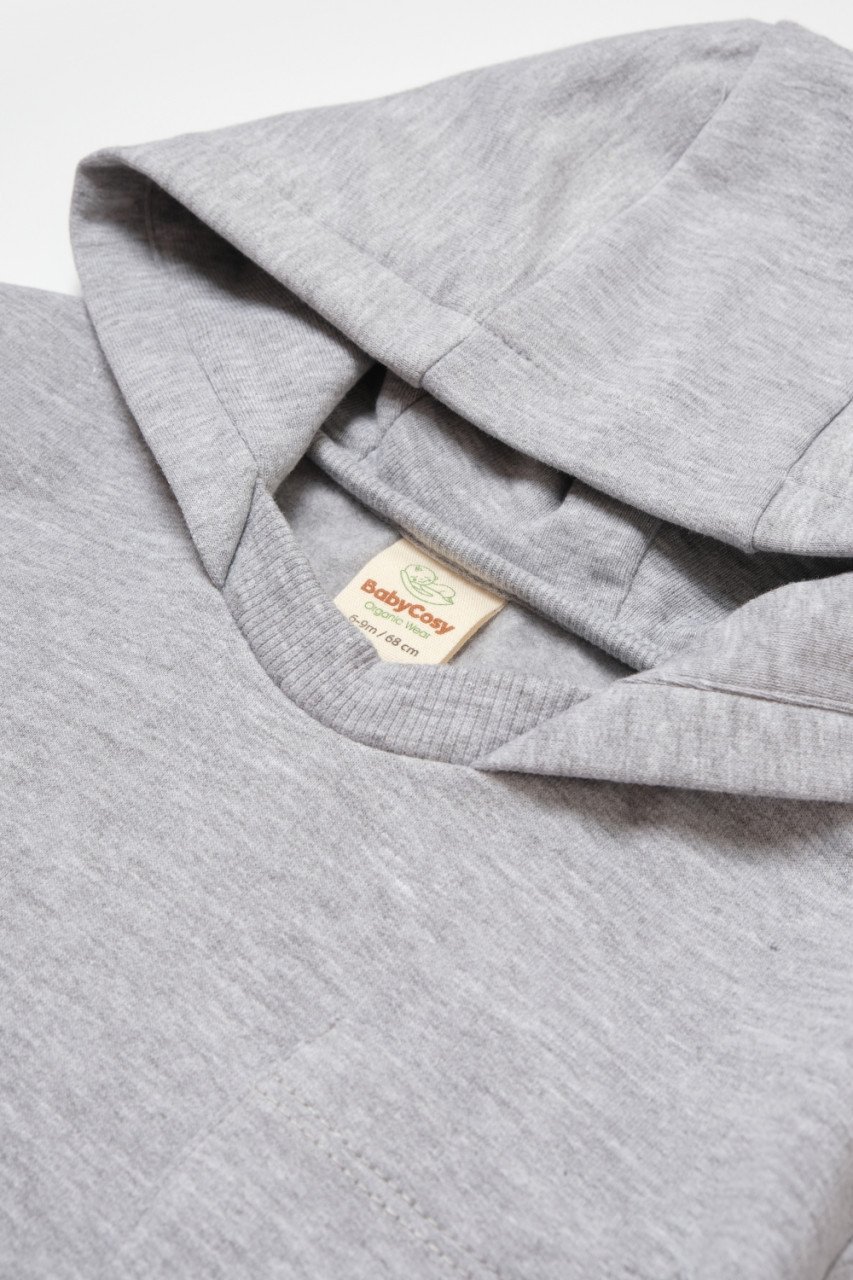 Set hanorac cu gluga si pantaloni, Two thread, 100%bumbac organic – Gri, BabyCosy (Marime: 9-12 luni)