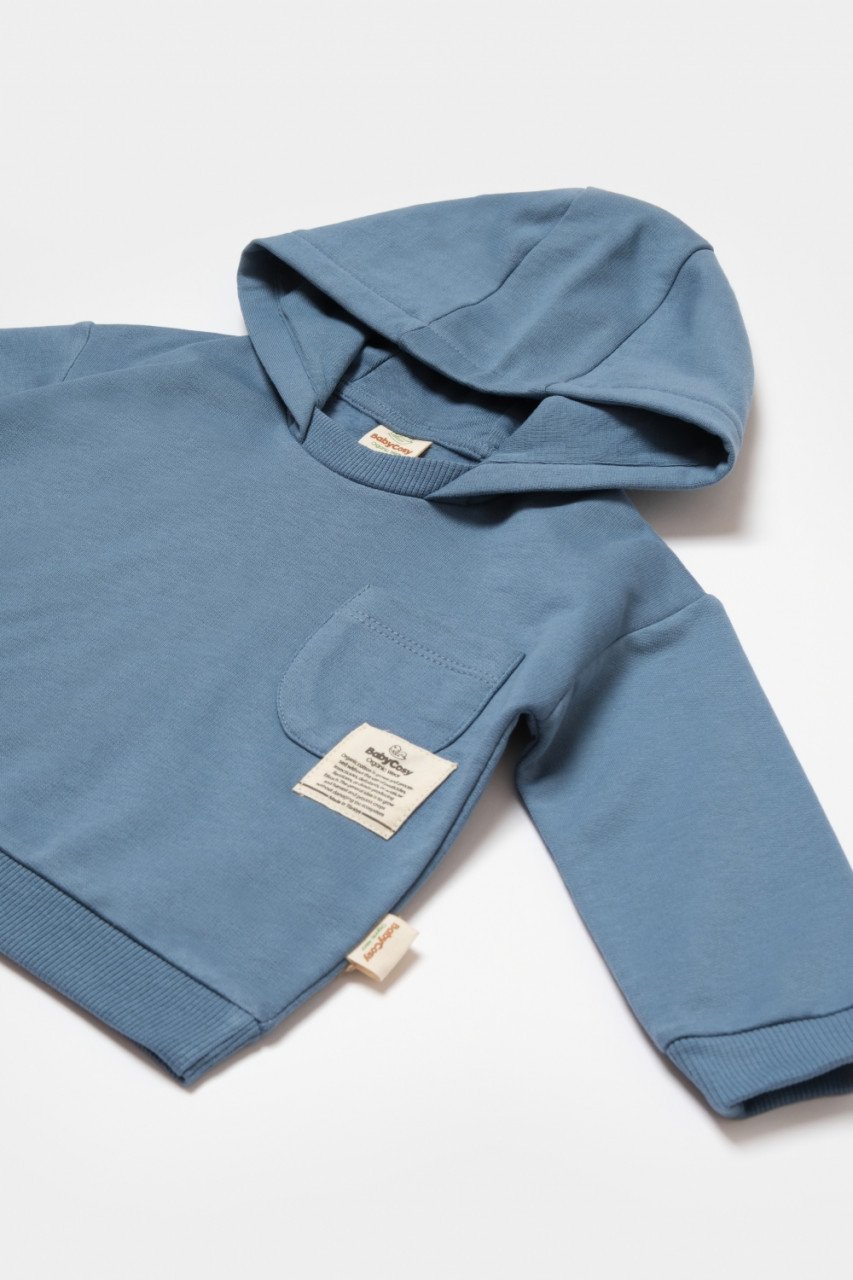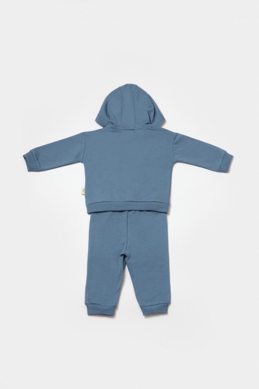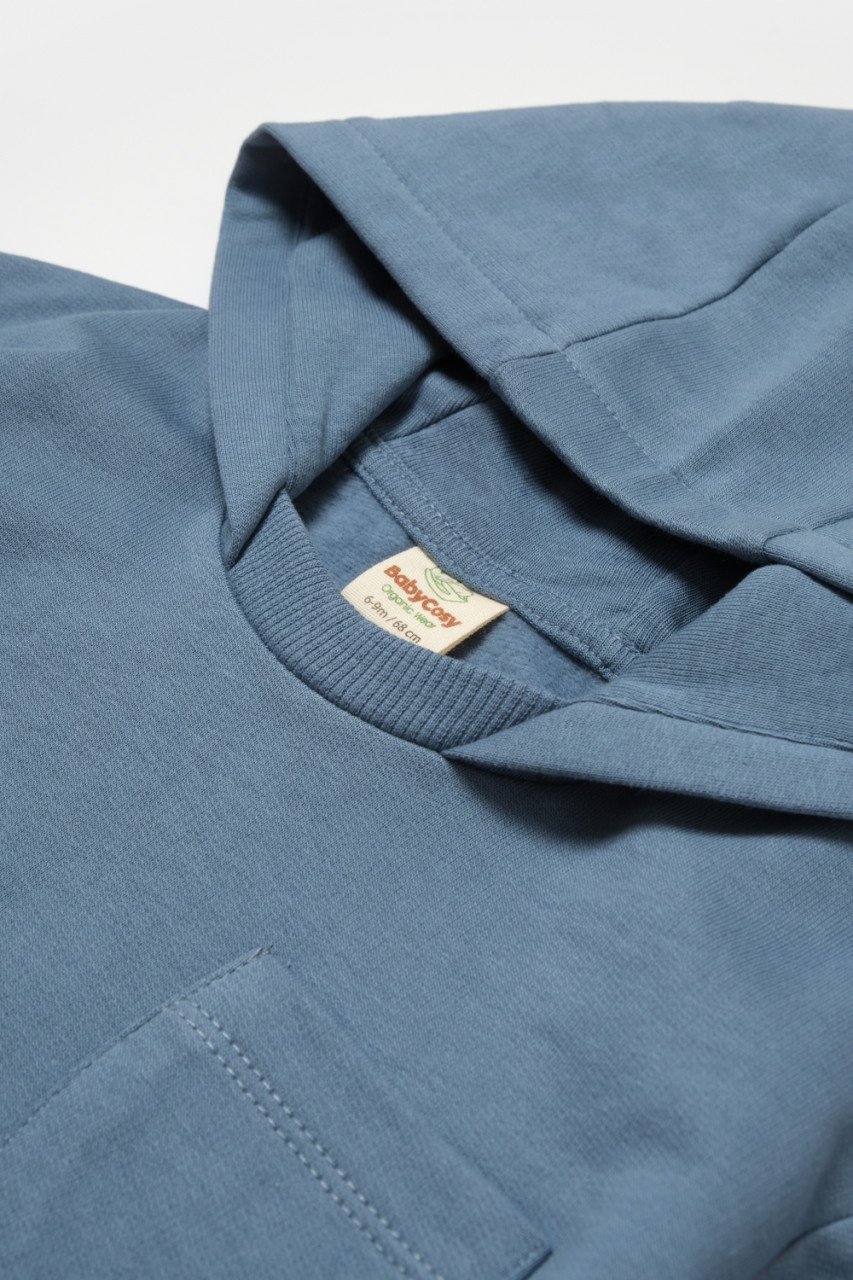 Set hanorac cu gluga si pantaloni, Two thread, 100%bumbac organic – Indigo, BabyCosy (Marime: 3-6 Luni)