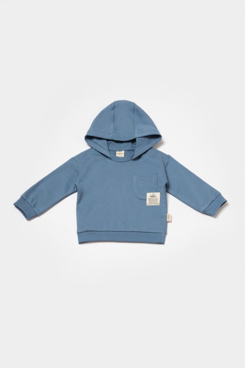 2. Hanoracul cu maneci lungi si gluga, din 100% bumbac organic,are un buzunar decotativ la piept.