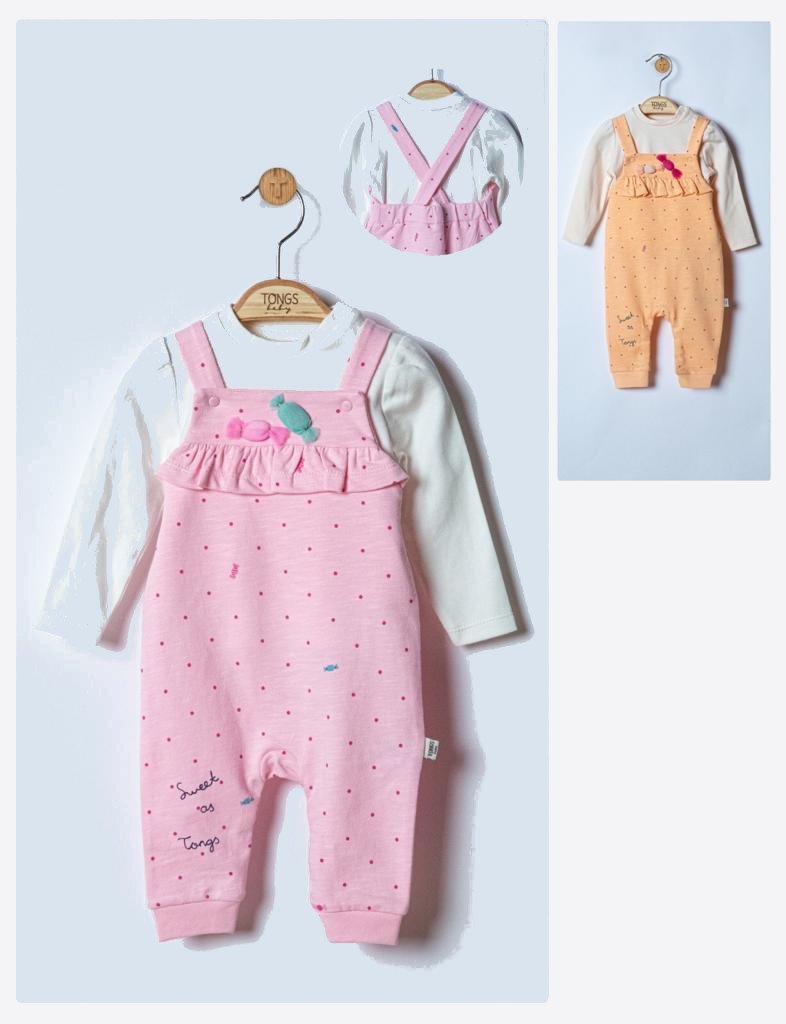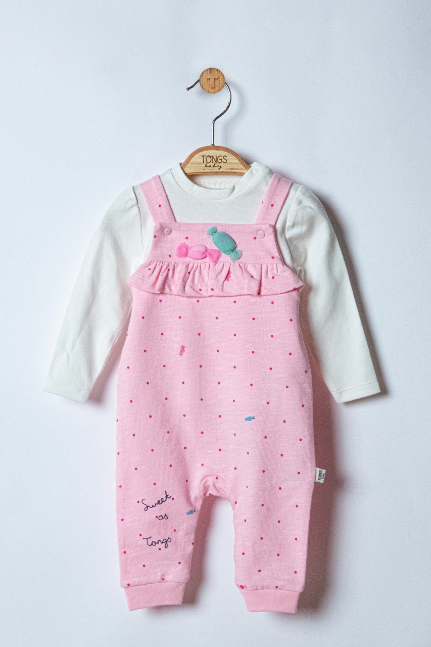 Set salopeta cu bluzita Sweets pentru bebelusi, Tongs baby (Culoare: Somon, Marime: 6-9 luni)