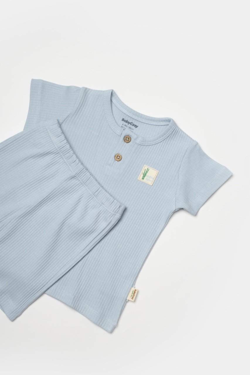 Set tricou cu pantaloni Bamboo, blue, BabyCosy, 50%bumbac+50% bambus (Marime: 6-9 luni)