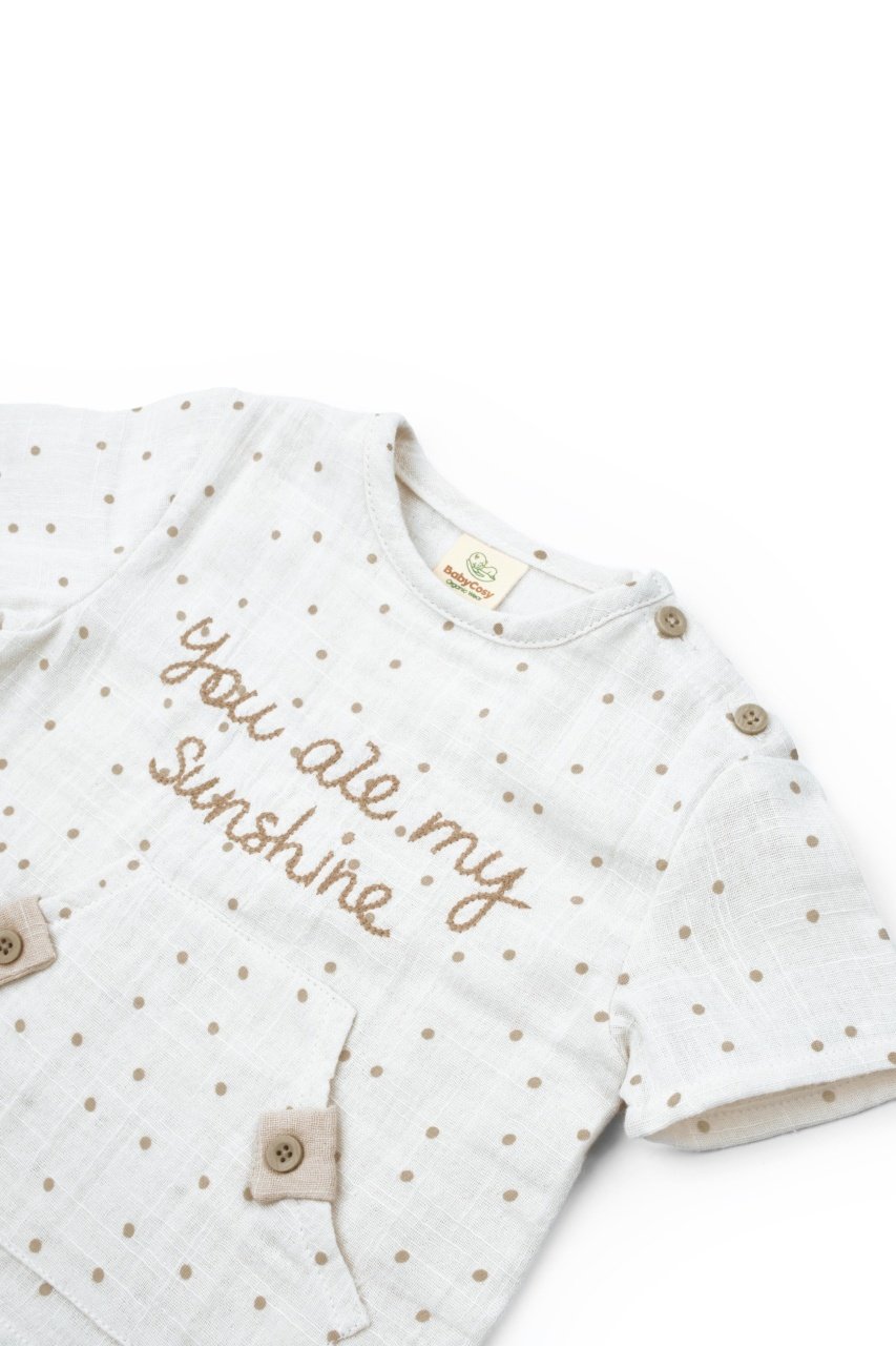 Set tricou cu pantaloni scurti TeddyBear, 100% bumbac organic, BabyCosy (Marime: 9-12 luni)