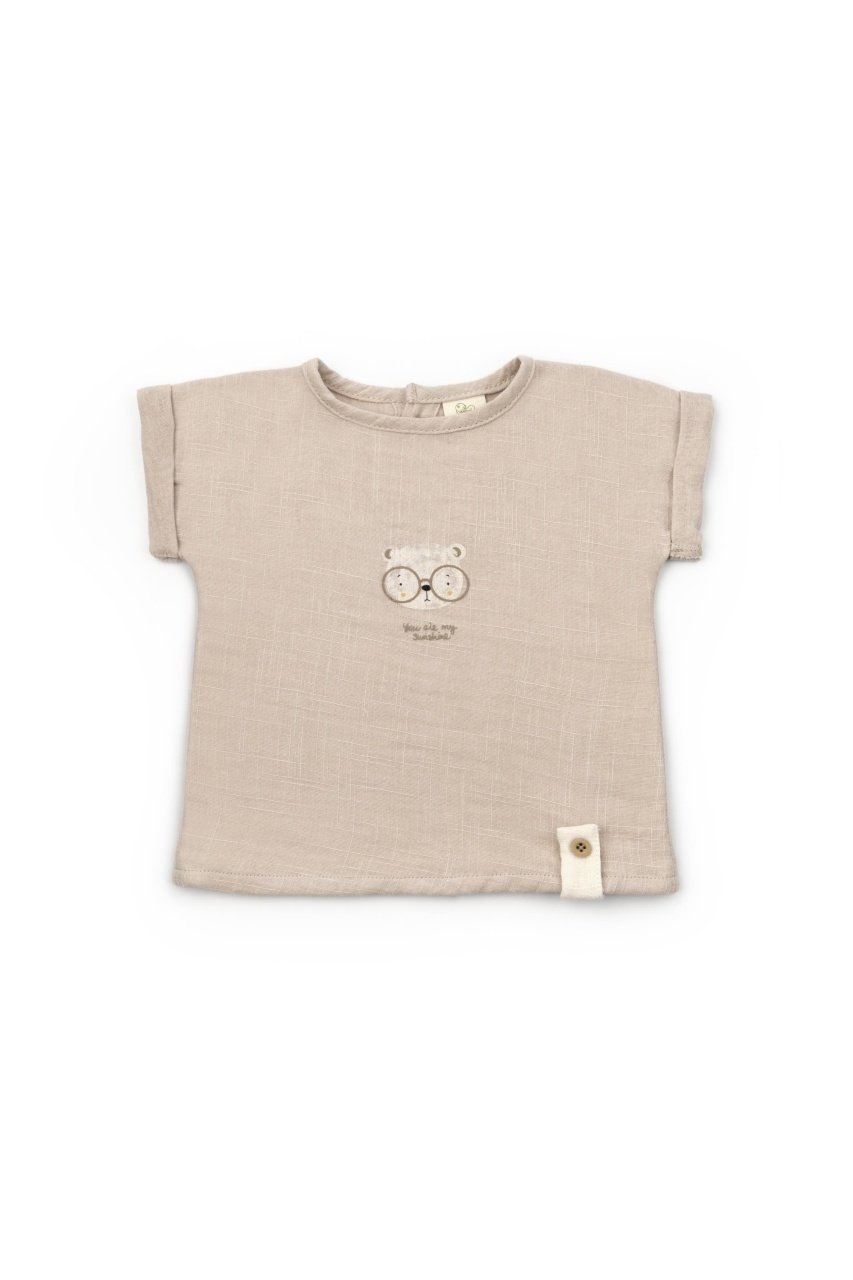 Set tricou maro cu pantaloni scurti TeddyBear, 100% bumbac organic, BabyCosy (Marime: 12-18 Luni)