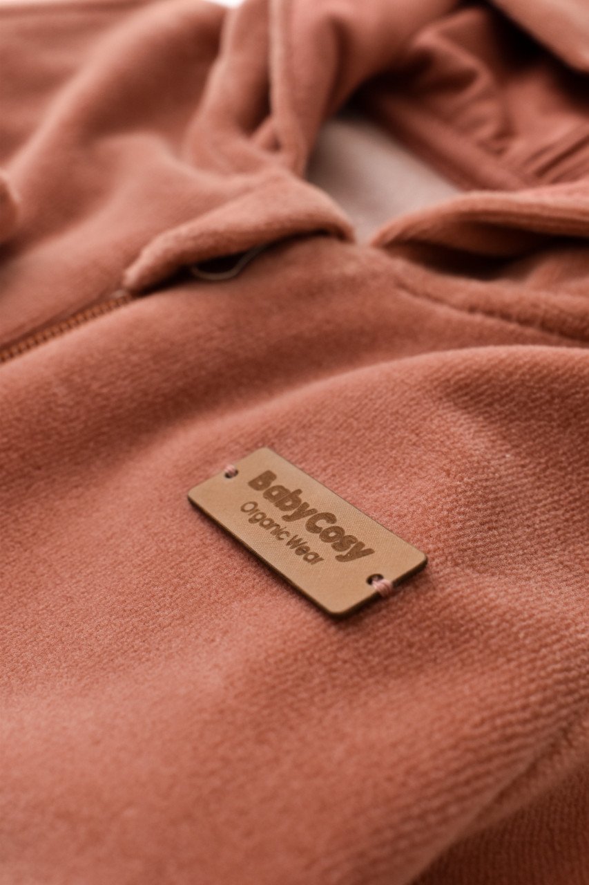 Set Ursulet cu bluzita cu fermoar si gluga si pantaloni lungi din 80%bumbac organic si 20% poliester – Caramiziu, BabyCosy (Marime: 9-12 luni)