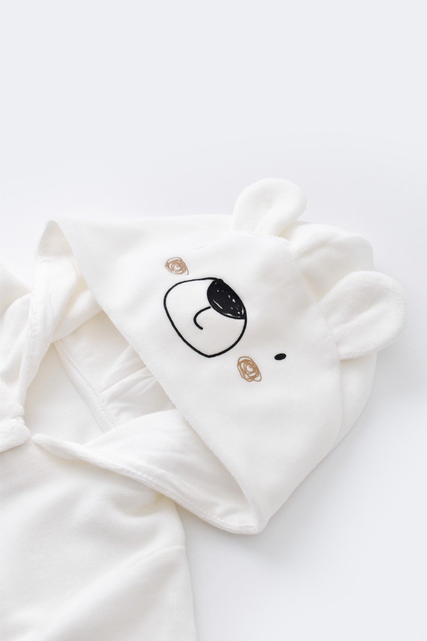 Set Ursulet cu bluzita cu fermoar si gluga si pantaloni lungi din 80%bumbac organic si 20% poliester – Ecru, BabyCosy (Marime: 18-24 Luni)